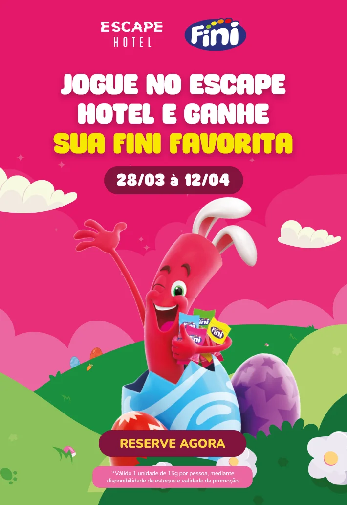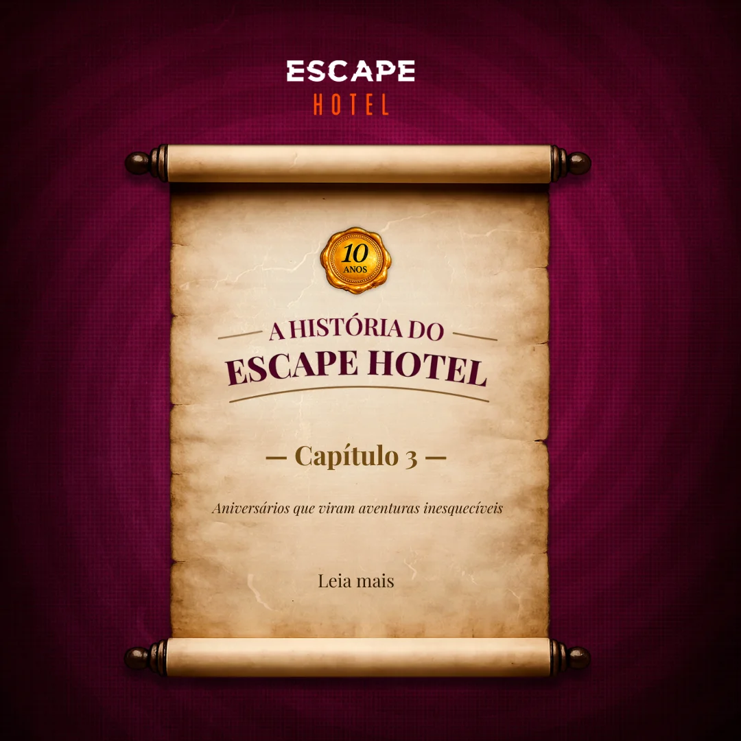 Referência em imersão há 10 anos, o Escape Hotel oferece o que há de melhor em jogos de escape. Reúna seus amigos em salas temáticas, encontre pistas e use toda sua inteligência para escapar em até 60 minutos. Venha viver essa experiência!
