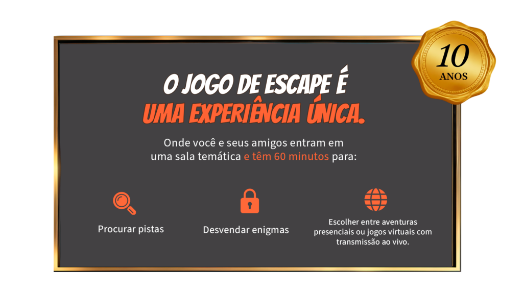 O jogo de escape é uma experiência única e emocionante, onde você e seus amigos entram em uma sala temática e têm 60 minutos para: